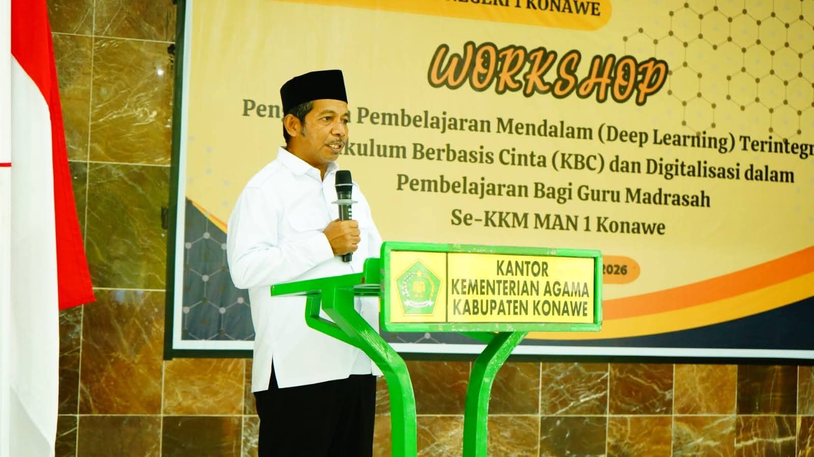 ULASSULTRA.COM- Kepala Kantor Wilayah Kementerian Agama Provinsi Sulawesi Tenggara, H. Mansur, S.Pd., M.A., secara resmi membuka Workshop Deep Learning Terintegrasi Kurikulum Berbasis Cinta dan Digitalisasi dalam Pembelajaran bagi Guru Madrasah se-KKM MAN 1 Konawe, berlangsung di Aula MAN 1 Konawe. Selasa (14/4/2026).