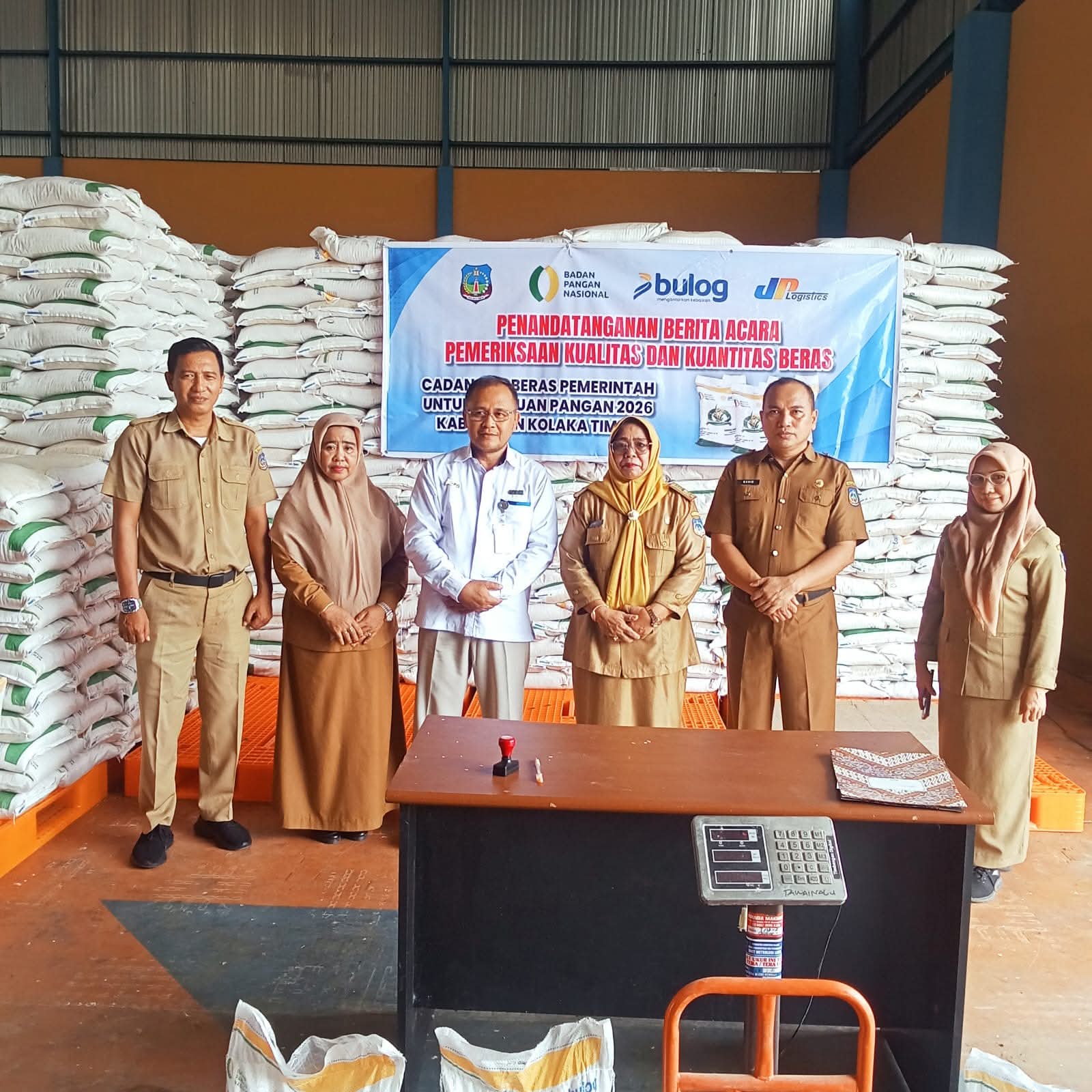 Dalam giat tersebut, dilakukan penandatanganan Berita Acara Pemeriksaan Kualitas dan Kuantitas Beras. Dinas Ketapang Koltim, Dr. Ir. Idarwaty menegaskan bahwa pengecekan ini sangat krusial agar masyarakat menerima komoditas yang bermutu tinggi.